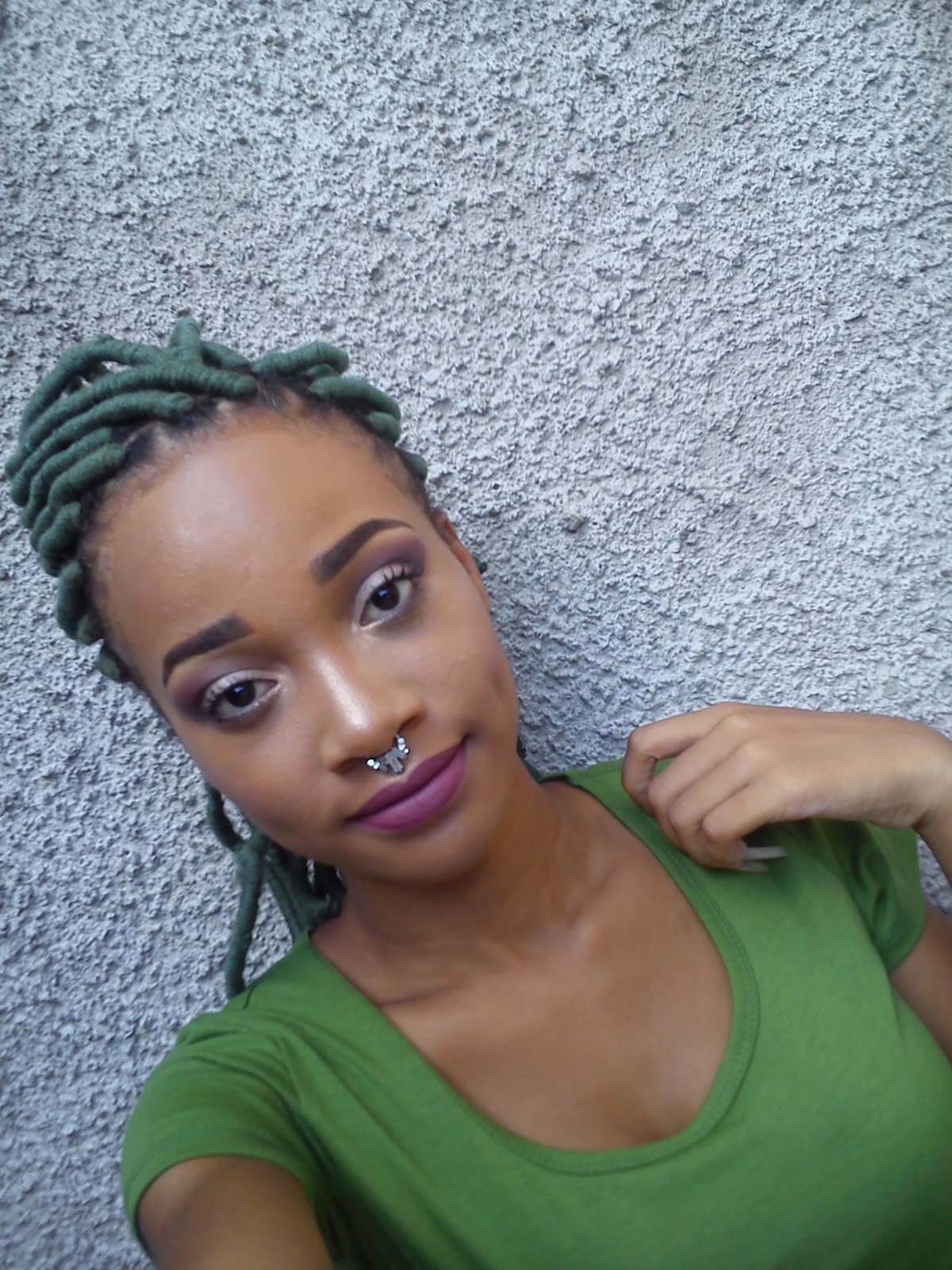 Date Night Valentines Day Make Up Look with Green Yarn Locs