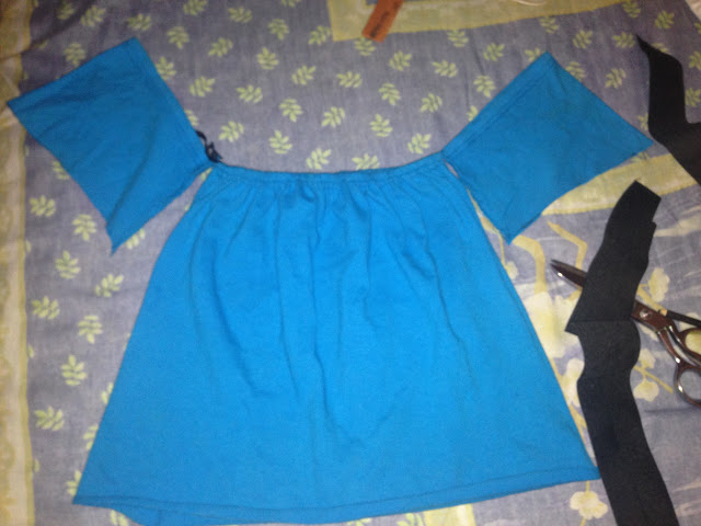 For the first time ever I’ve made a top and wore it I feel so good. I tried multiple times to redesign my clothes but always fail. So I took it upon my self to try and create an Off-Shoulder Top that I’ve seen all the girls wearing on social media. Theirs are purchased ones you can get on any online store but why go out and buy a $20 blouse when you can make it yourself for $5-10. No sewing machine needed.